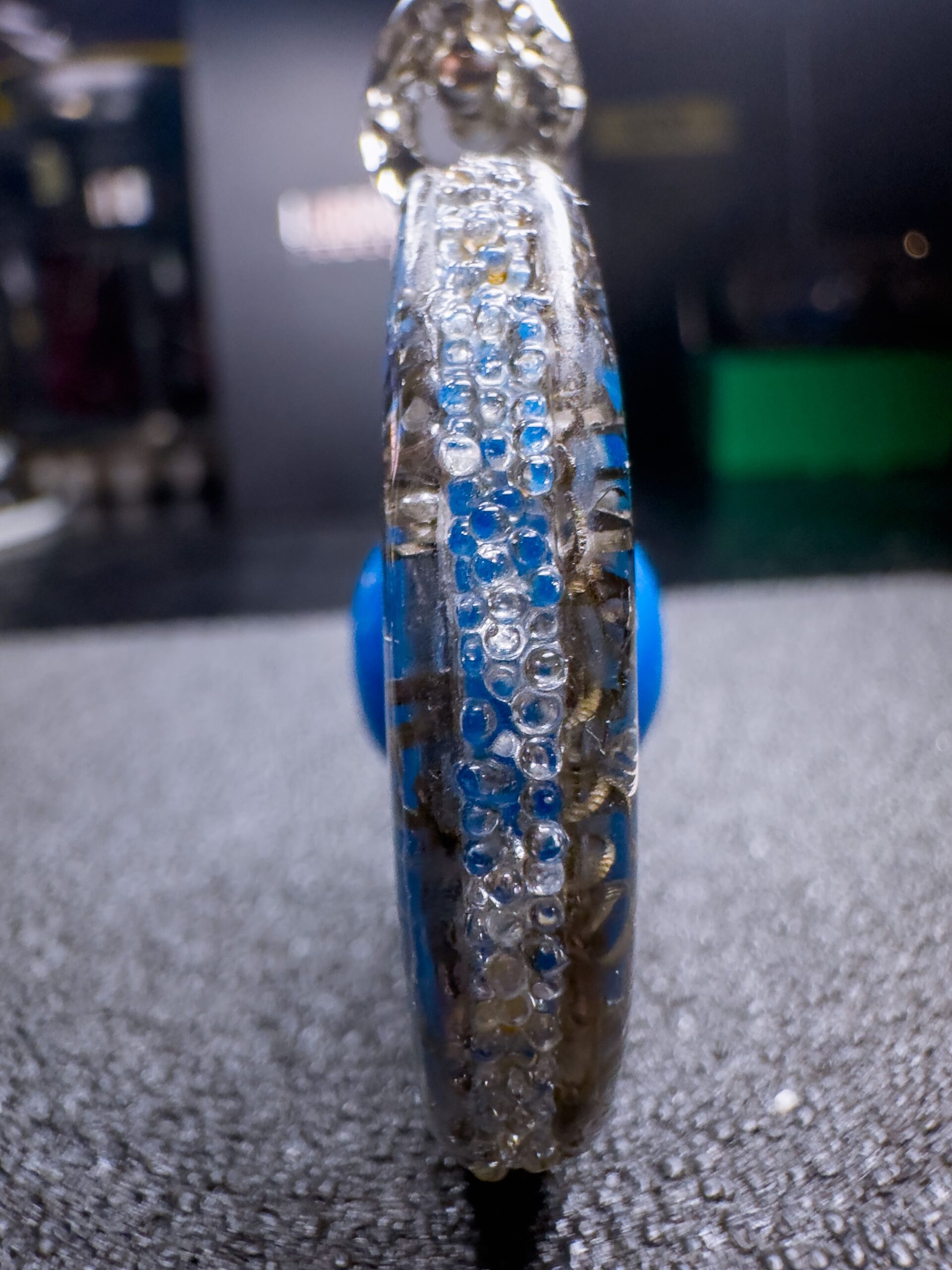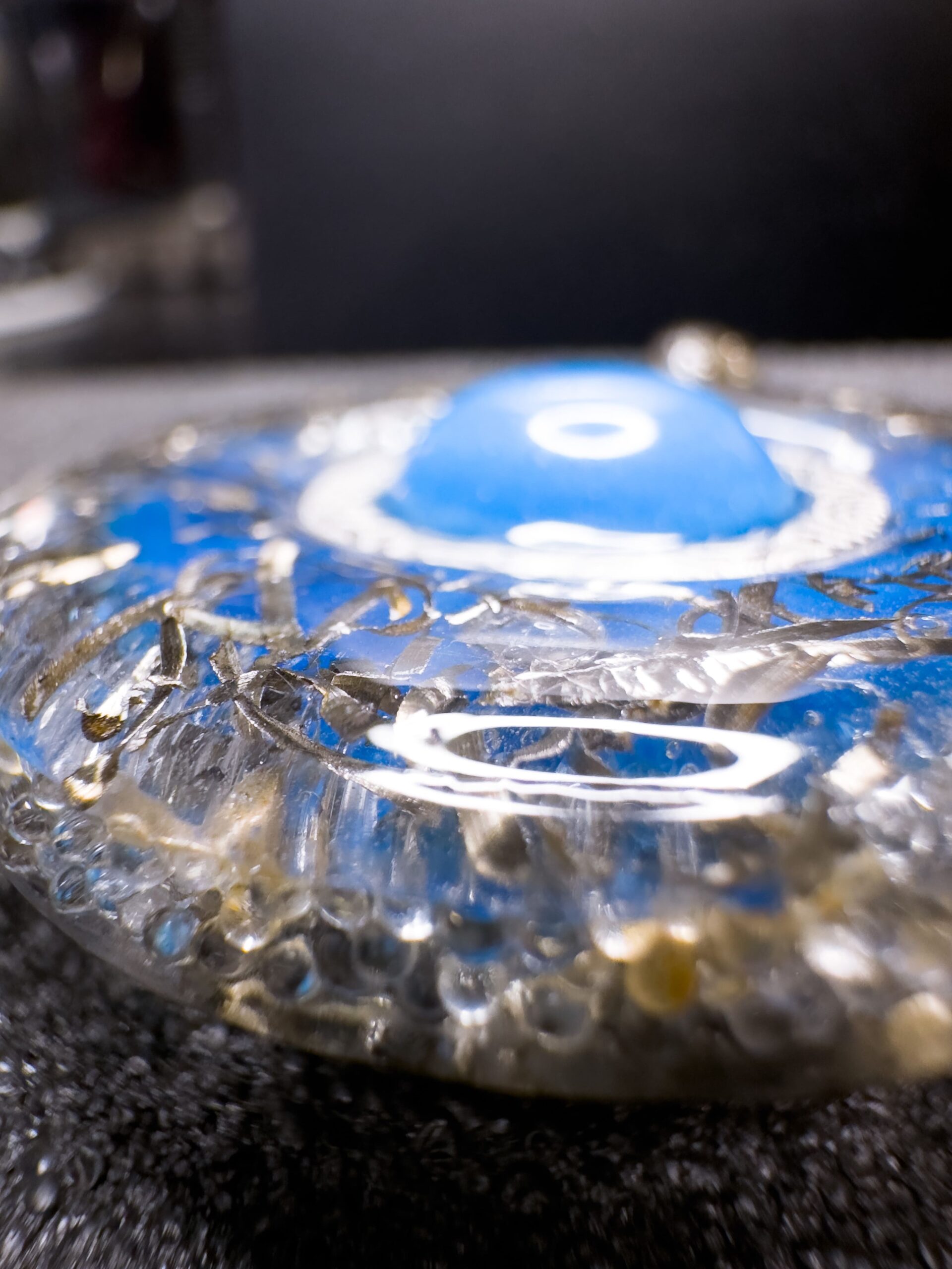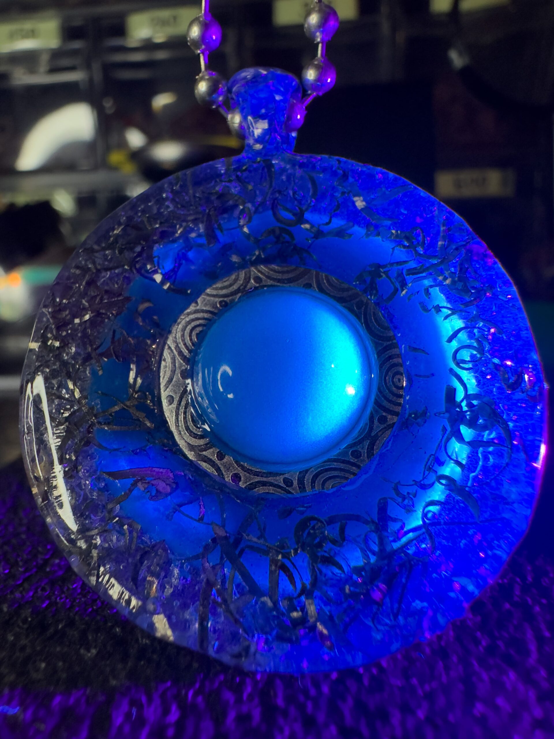 Inoltre, lโinserimento di microsfere di vetro tra le 2 facce del ciondolo dona un effetto luminoso laterale che affascina, incanta ed amplifica lโeffetto visivo!
