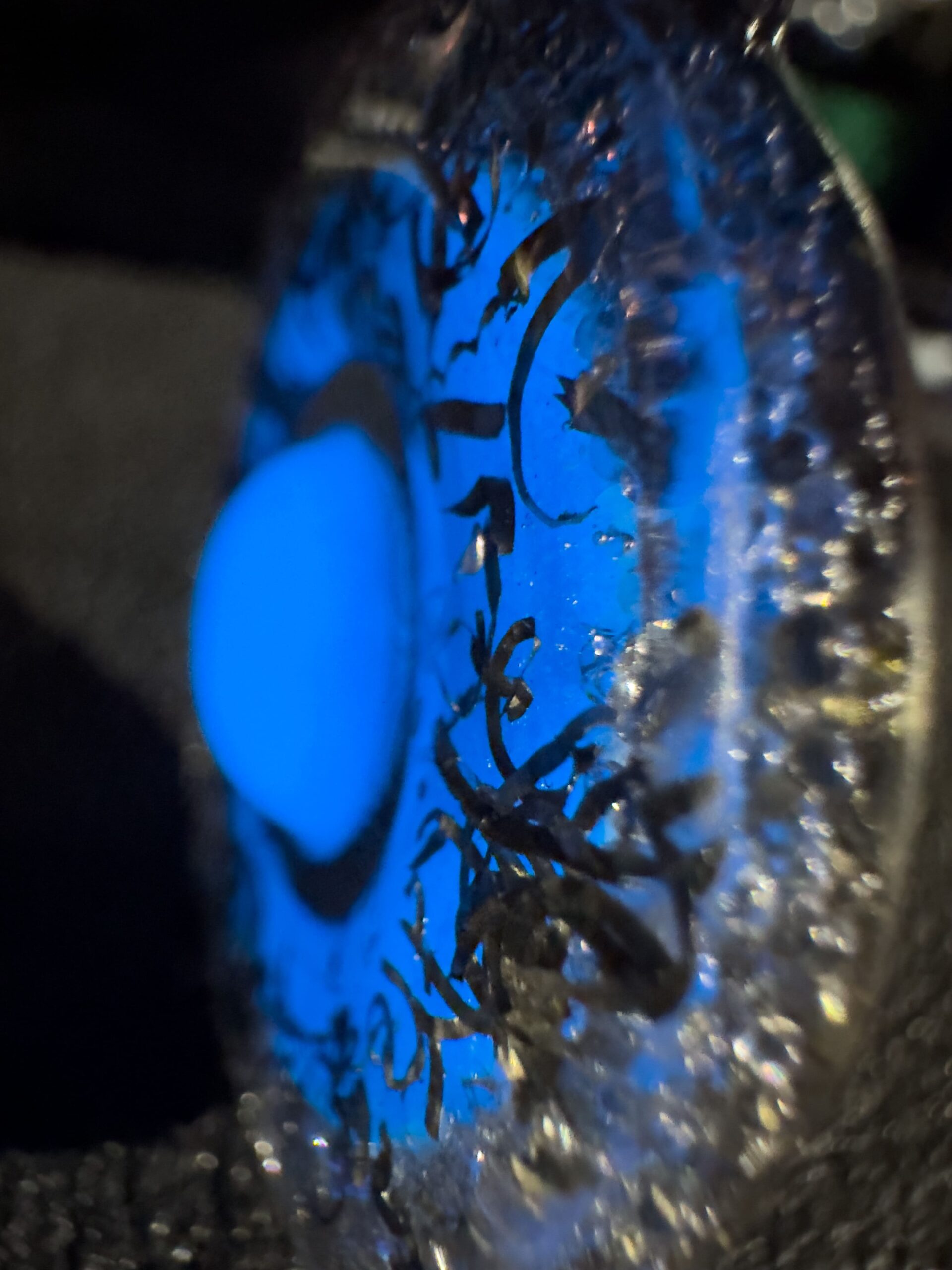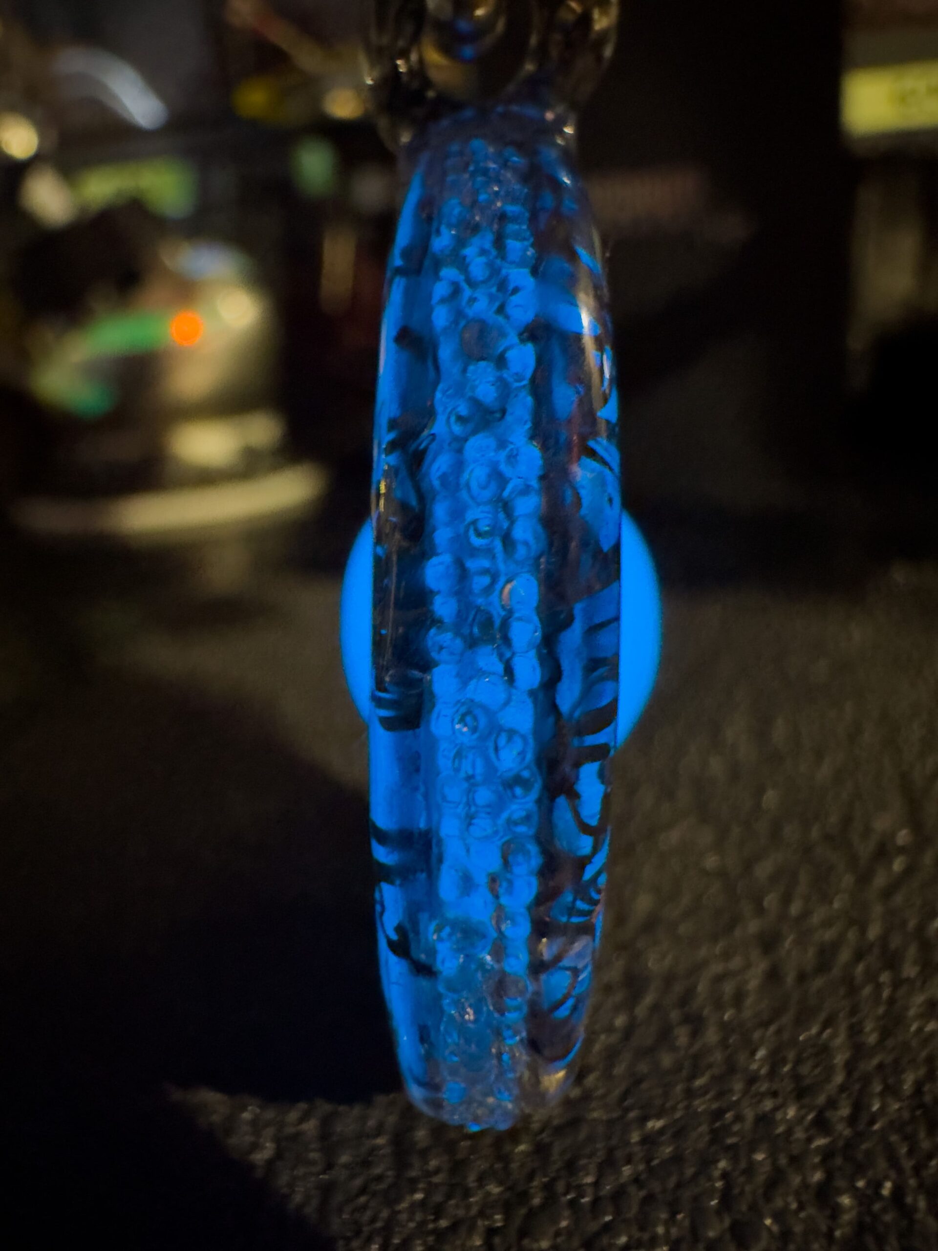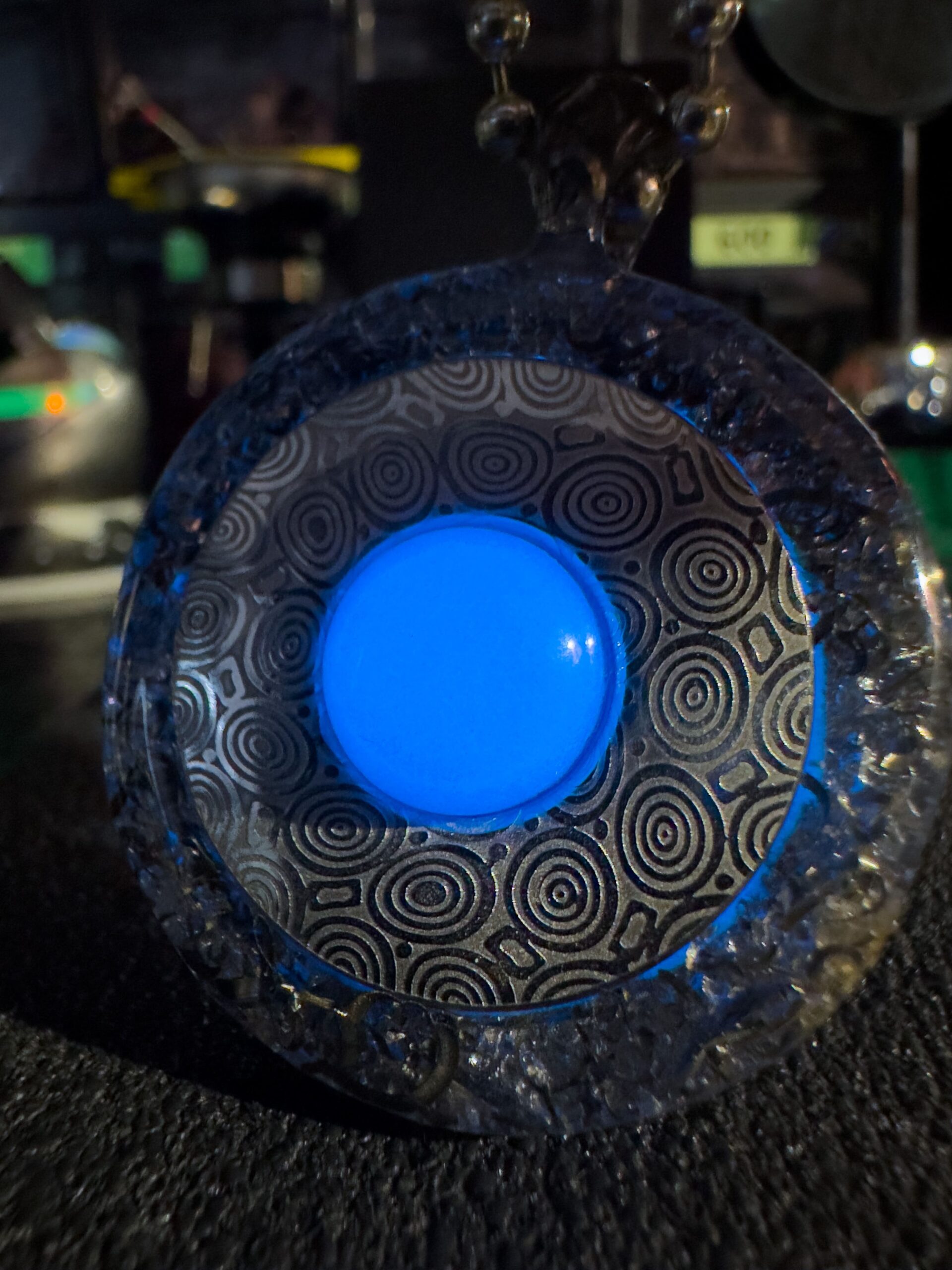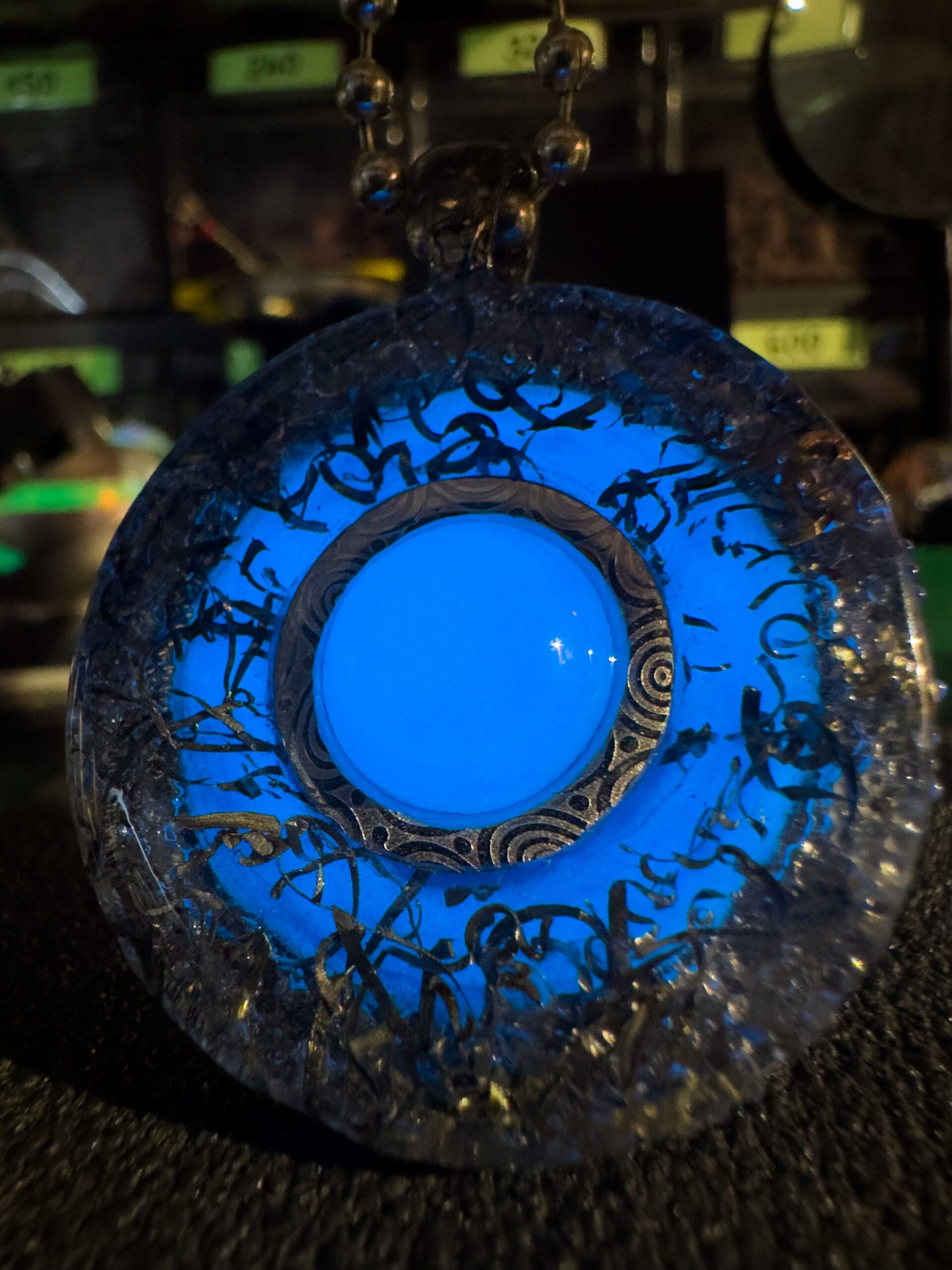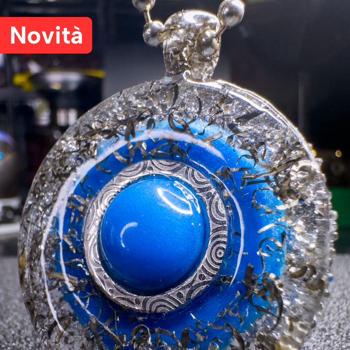 Al centro, il cuore pulsante di questo gioiello! Una sfera fosforescente azzurra che non solo illumina lโoscuritร , ma che simboleggia anche introspezione, calma e mistero. Una vera e propria chiamata allโanima!