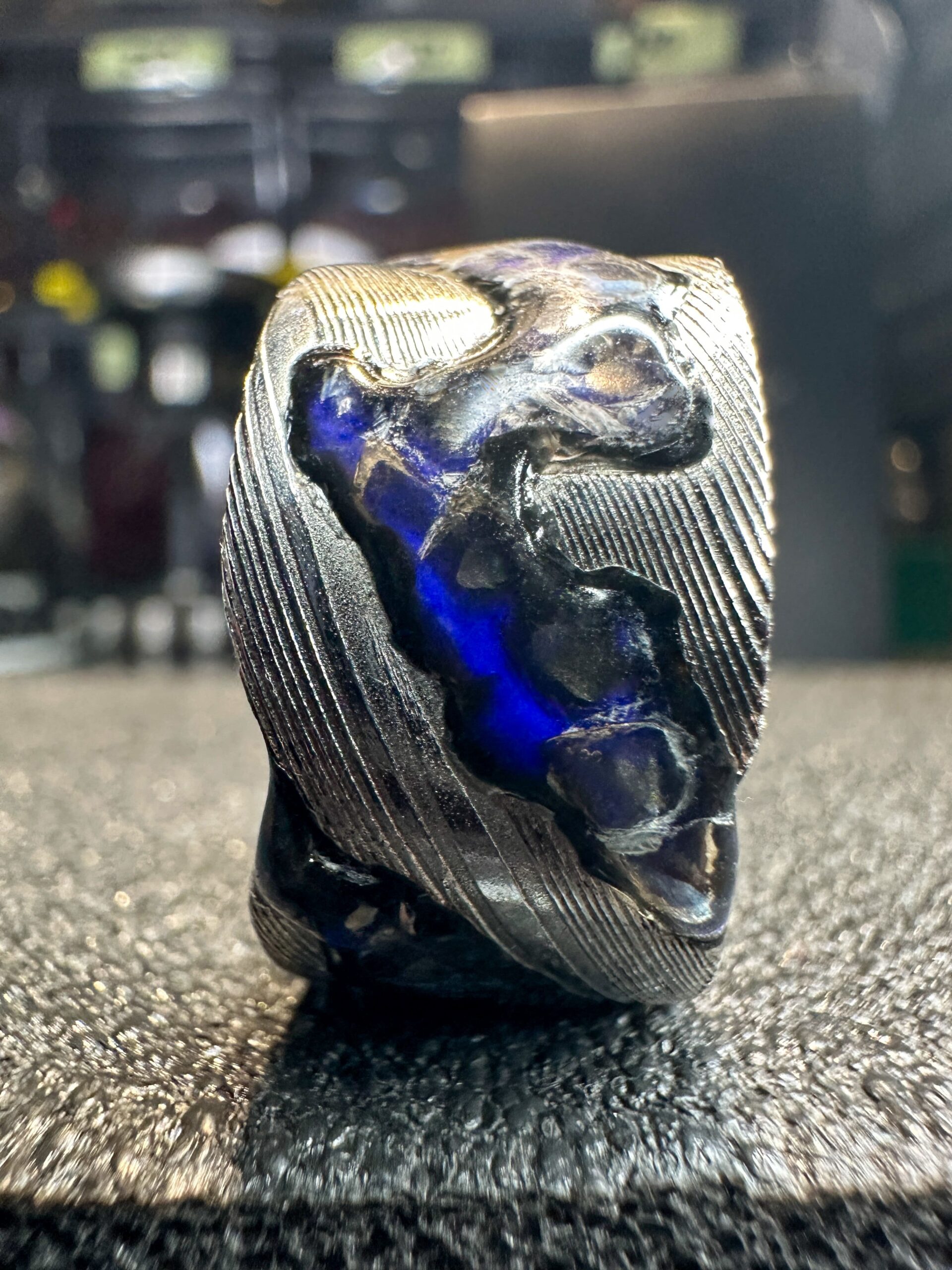 Lasciati avvolgere dal fascino di questo anello in acciaio Damasco! Un pezzo unico che evoca la bellezza e il mistero del serpente.